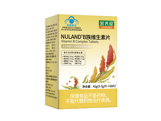 【标志性成分及含量】每片含:维生素B1 15mg、维生素B2 15mg、维生素B6 7.5mg、维生素B12 7.5μg烟酰胺37.5mg、叶酸375μg、生物素75μg、泛酸15mg